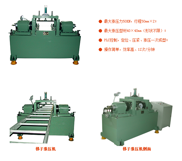 MJG16ZE铝梯涨压机是专业的梯子涨压成型工具。该机是我厂技术人员最新研制的多功能铝梯专用涨压机。MJG16ZE铝梯涨压机是目前国内最先进铝梯的涨压设备,已达到国际先进水平,至推出以来受到广大用户的好评。MJG16ZE铝梯涨压机(完成梯子的涨压,形成牢固有效的多点卡口,并完成径向铆接翻边工艺)是配合梯子铆接机使用的专业工具,可有效的提高工作效率。该机还可根据客户要求定制。